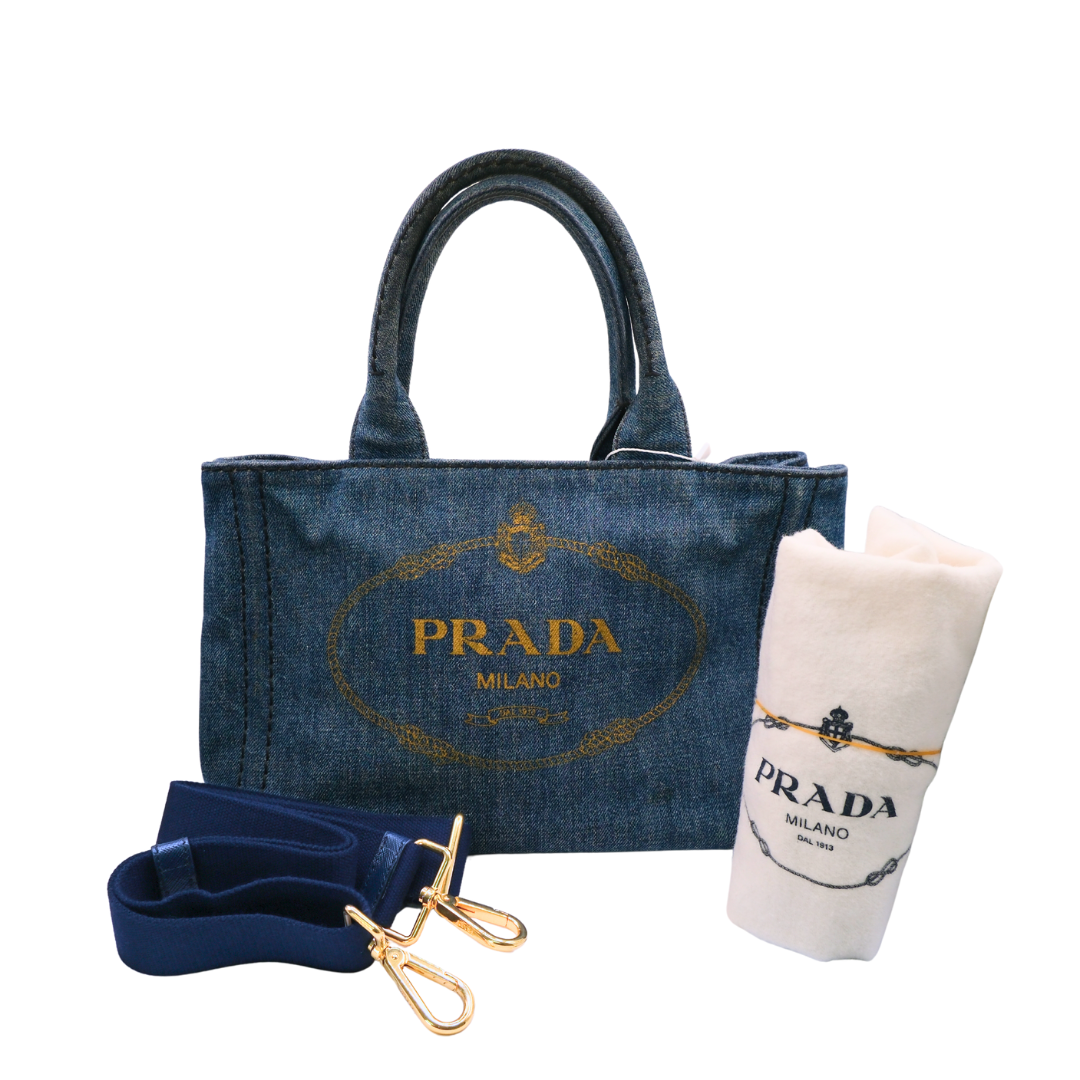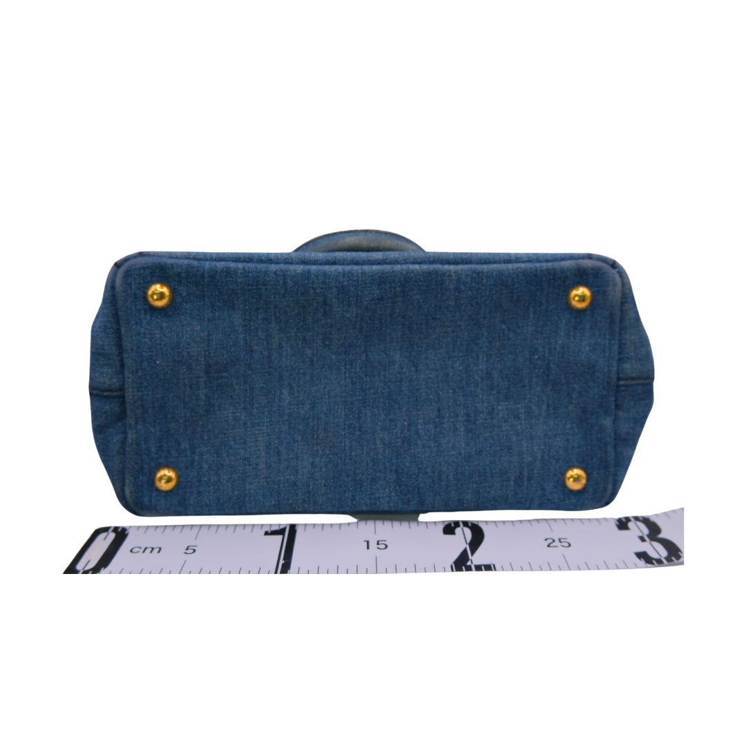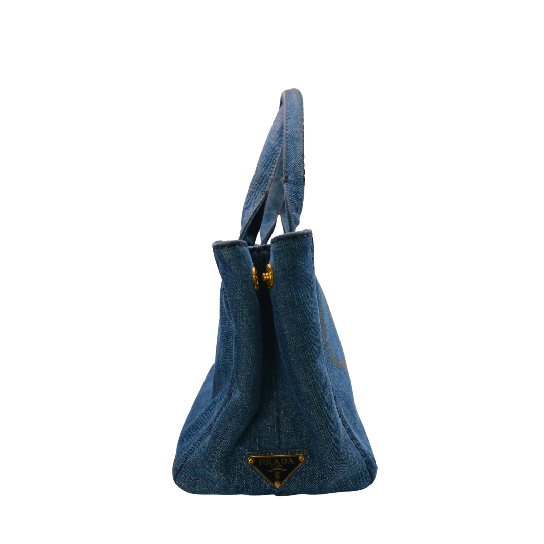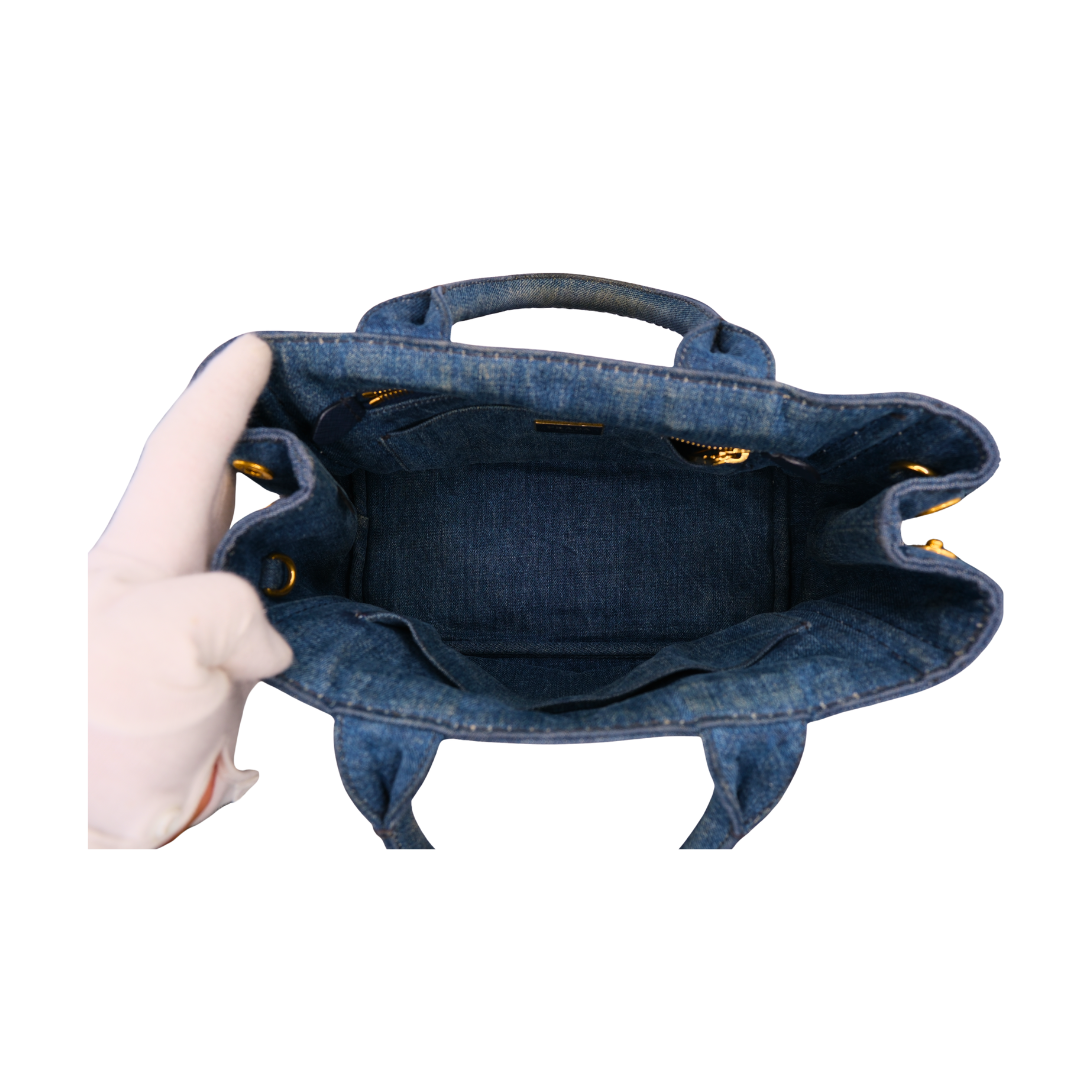 Prada Canapa Denim Shoulder and Handbag blue Denim with a Gold Logo