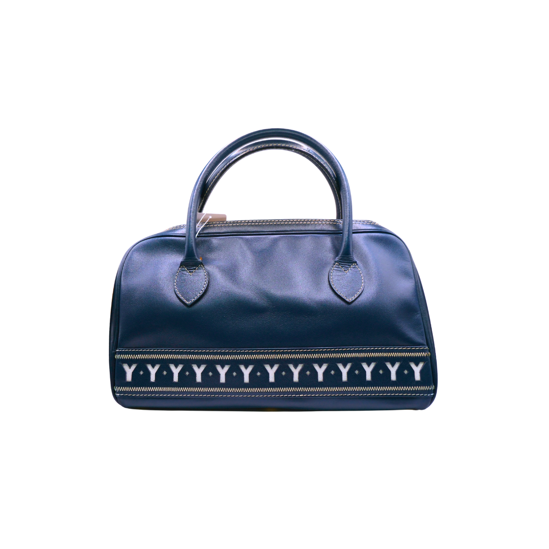 Yves Saint Laurent YSL Vintage Leather Handbag Satchel Navy blue