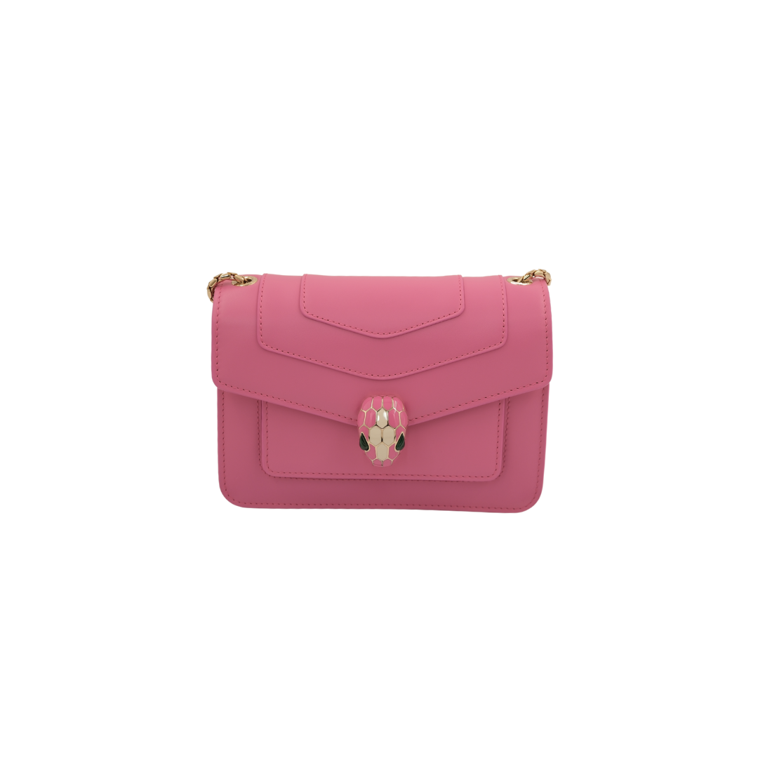 Serpenti Forever shoulder bag in pink leather, Rank A, with mirror , rain cover