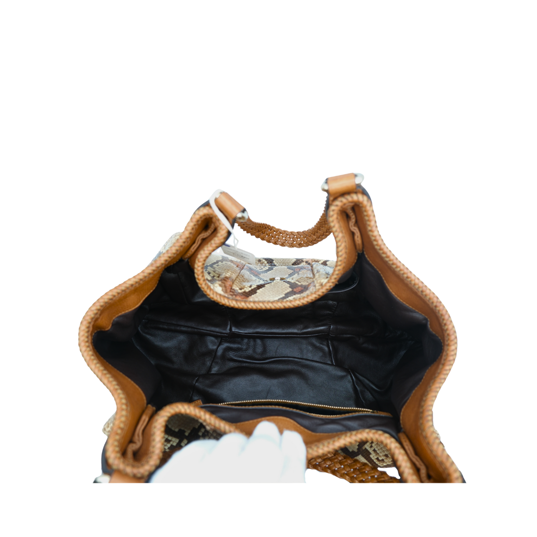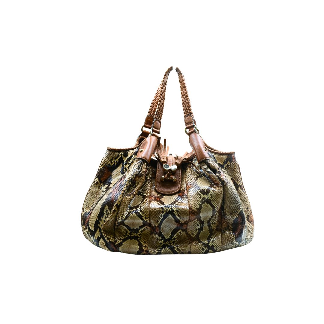 Gucci Python Marrakech Shoulder Bag in a Brown and Beige Color