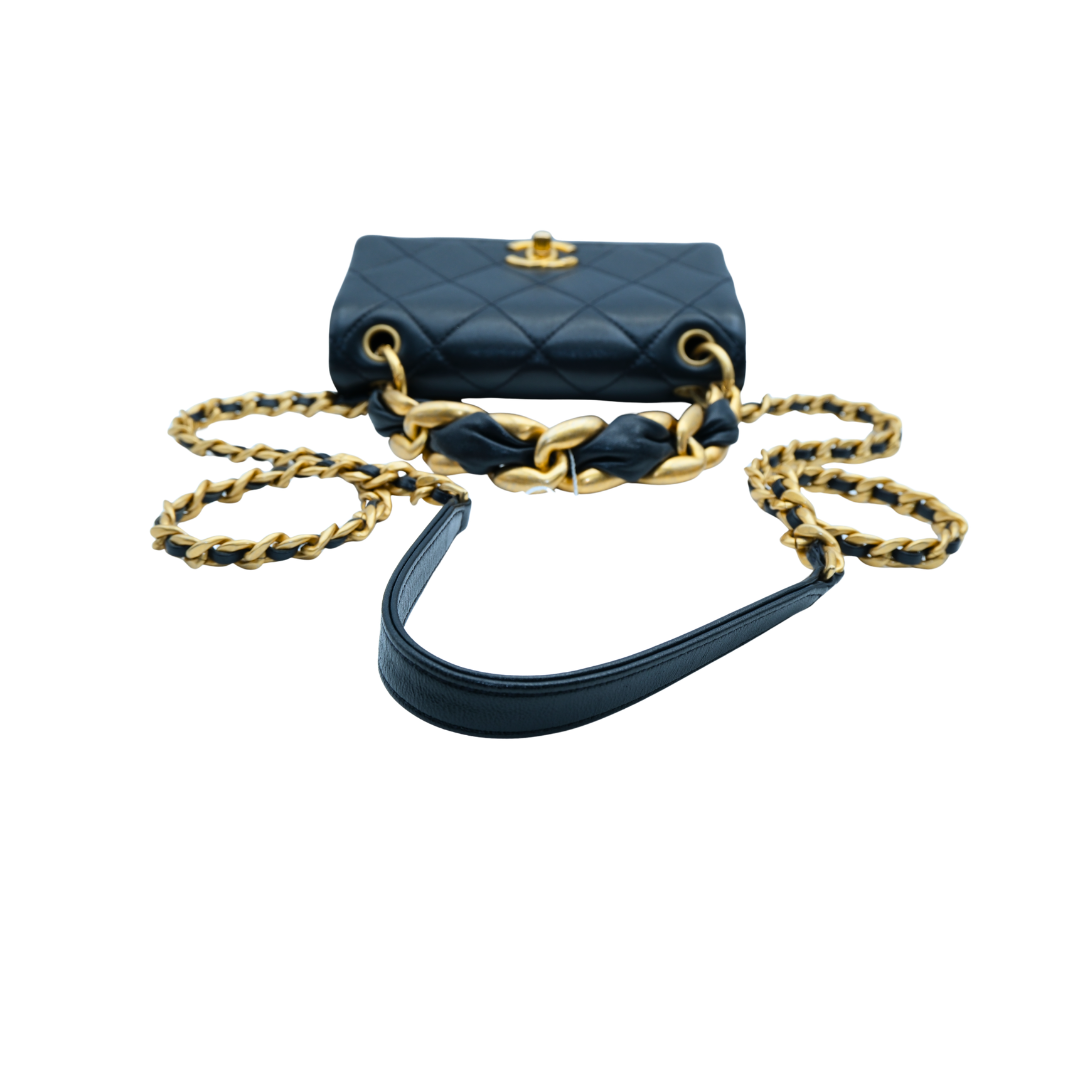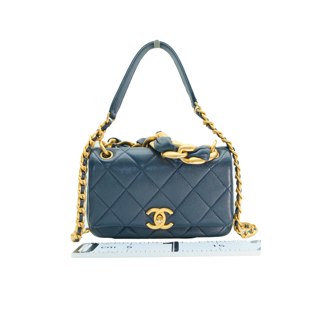 Chanel TopHandle Shoulder Small Flap Bag in Navy Blue