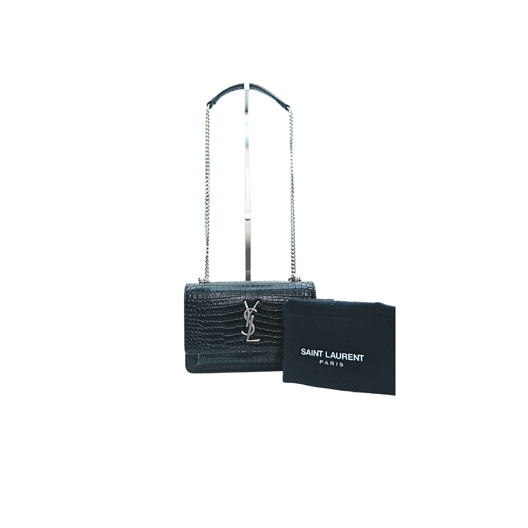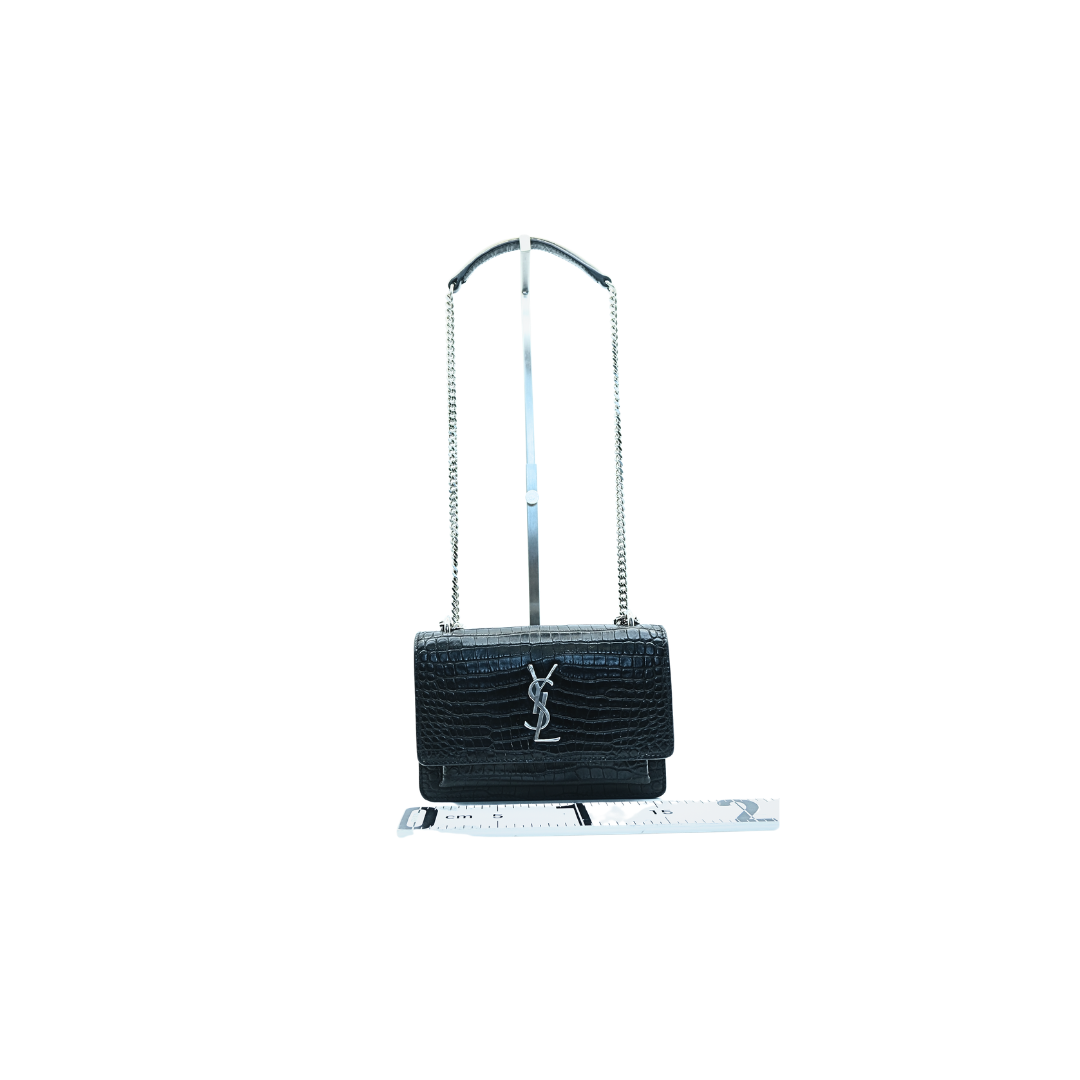 Saint Laurent Sunset Crocodile-Embossed Shoulder Bag
